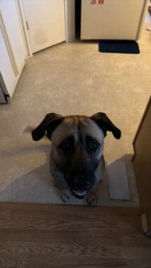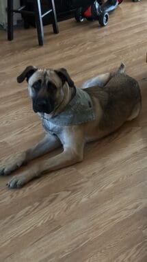 Duke is a beautiful young dog. He loves people and kids but he’s too much dog for me and my 5 1/2 year-old great grandson. He’s 16 months old and weighs 90 pounds. He’s got a great personality and he’s gentle but very strong. He’s very polite until he gets going then there’s no stopping him. He knows Sit, Stay, Lay down, Bring it, Leave it. He’s never been on a leash. He’s not good with cats.