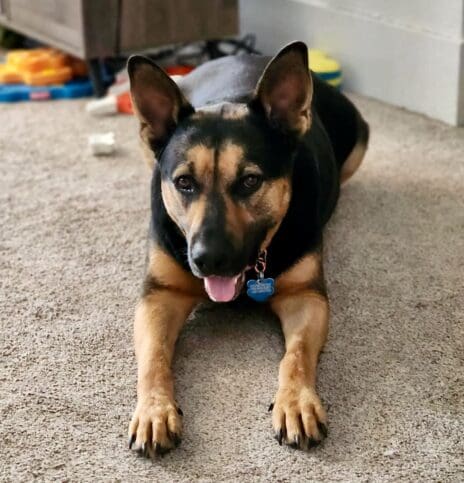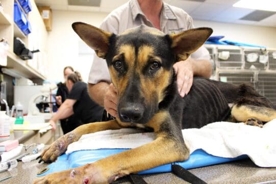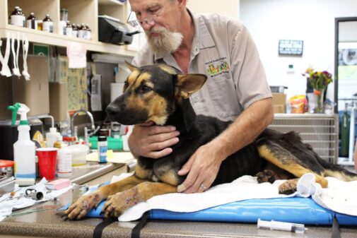 Noble’s rescue story began as an emaciated, forgotten stray dog in the Vistas. He was barely a year old when he was found starving to death, unable to stand and riddled with embedded foxtails.
