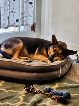 Between seizures, Noble was a happy, healthy dog. He enjoyed puzzle toys, loved his walks around Greenhorn Park, and slept on Suzi’s bed. Suzi did everything she could to keep him comfortable.