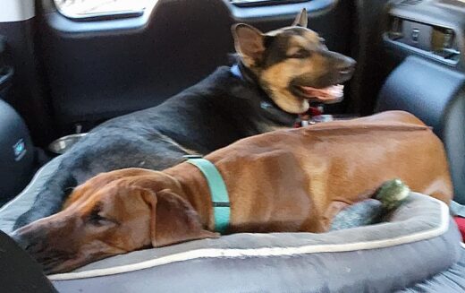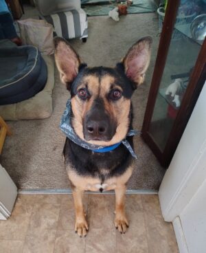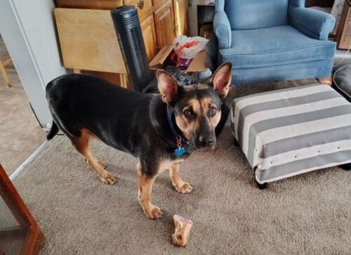 Noble’s biggest quirk was his enormous appetite, probably the result of being starved as a young dog. He’d eat anything and everything, even pushing other dogs out of their own food dishes. He’d visit the neighbors’ dogs up the hill to sample their food–not that he needed it! He enjoyed a special diet of cooked chicken, vegetables, yogurt, and liverwurst.