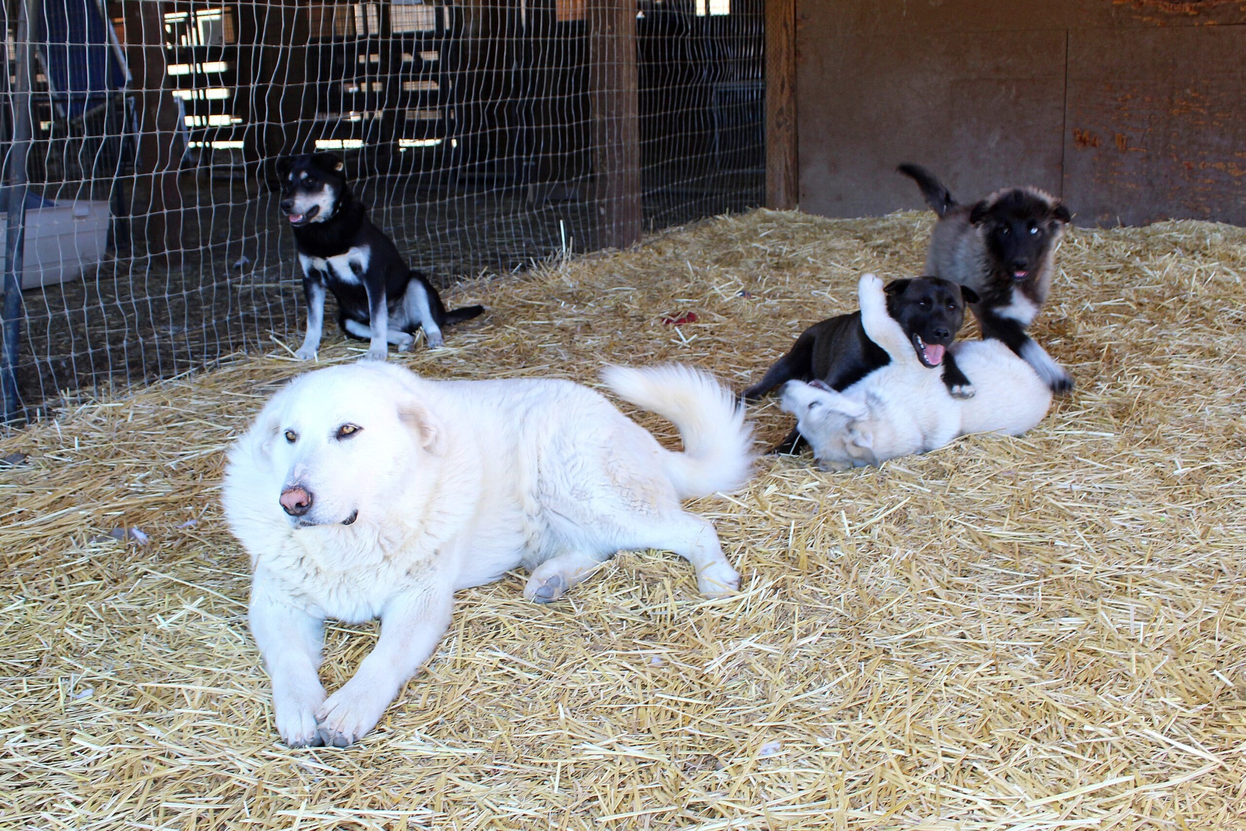 Home » Rescue Puppy Program Benefits From The Help Of Pyrenees Dogs » Pyrenees Dogs_Sugar interacting with pups 5