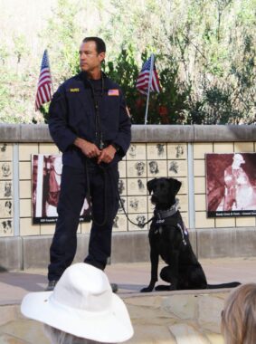 The next day, we drove to the SDF National Training Center in the hills up behind Santa Paula. It was a beautiful drive. Herbie enjoyed it but would have to wait in the car at SDF. Estelle was there to greet me. We chatted and made our way to the small outdoor amphitheater in Memorial Park where the ceremony would take place.