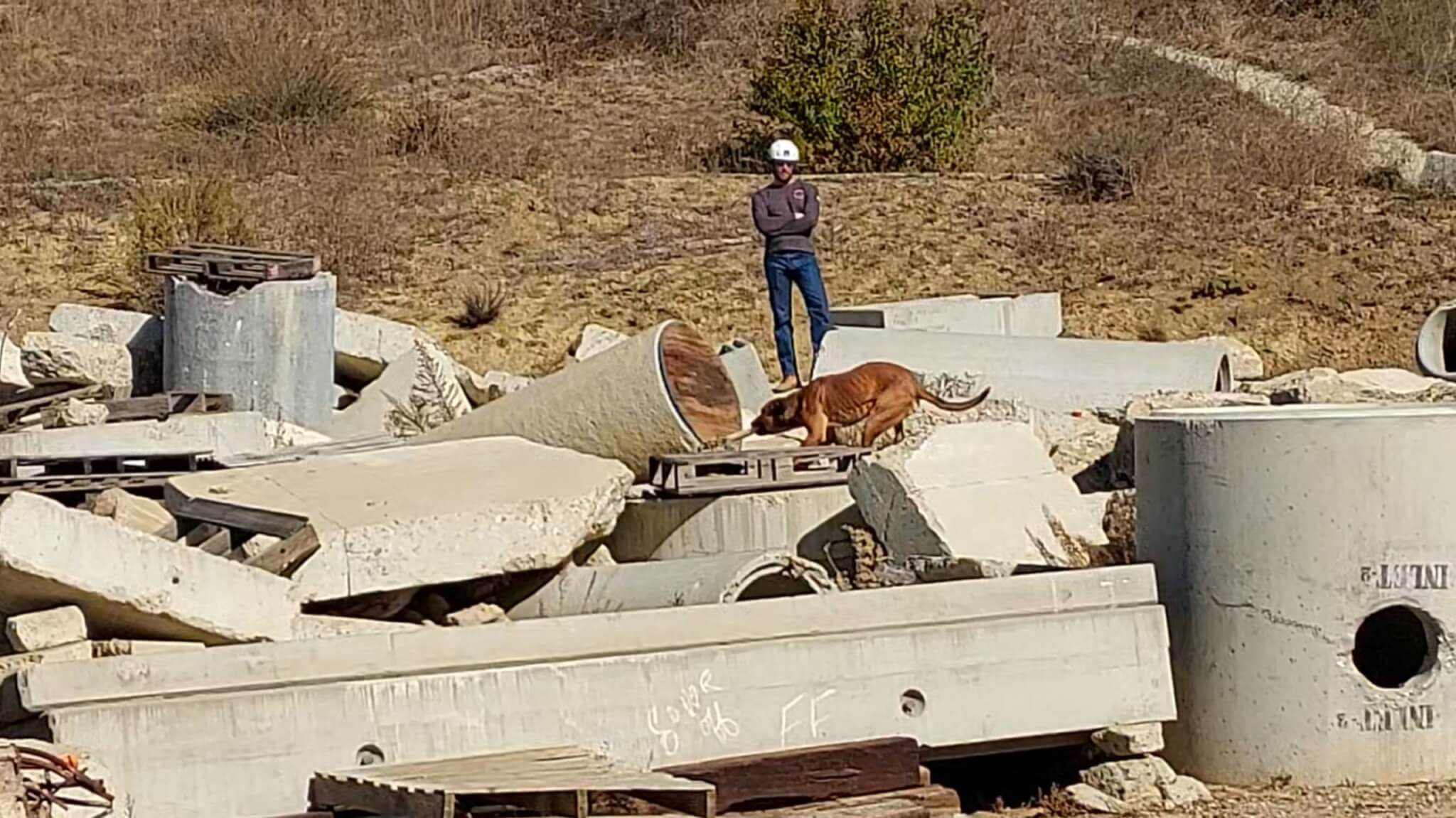 Home » Rescue Ranch Dog Steps Into A Promising Future After Search Team Pairing » Chirp tugging in rubble
