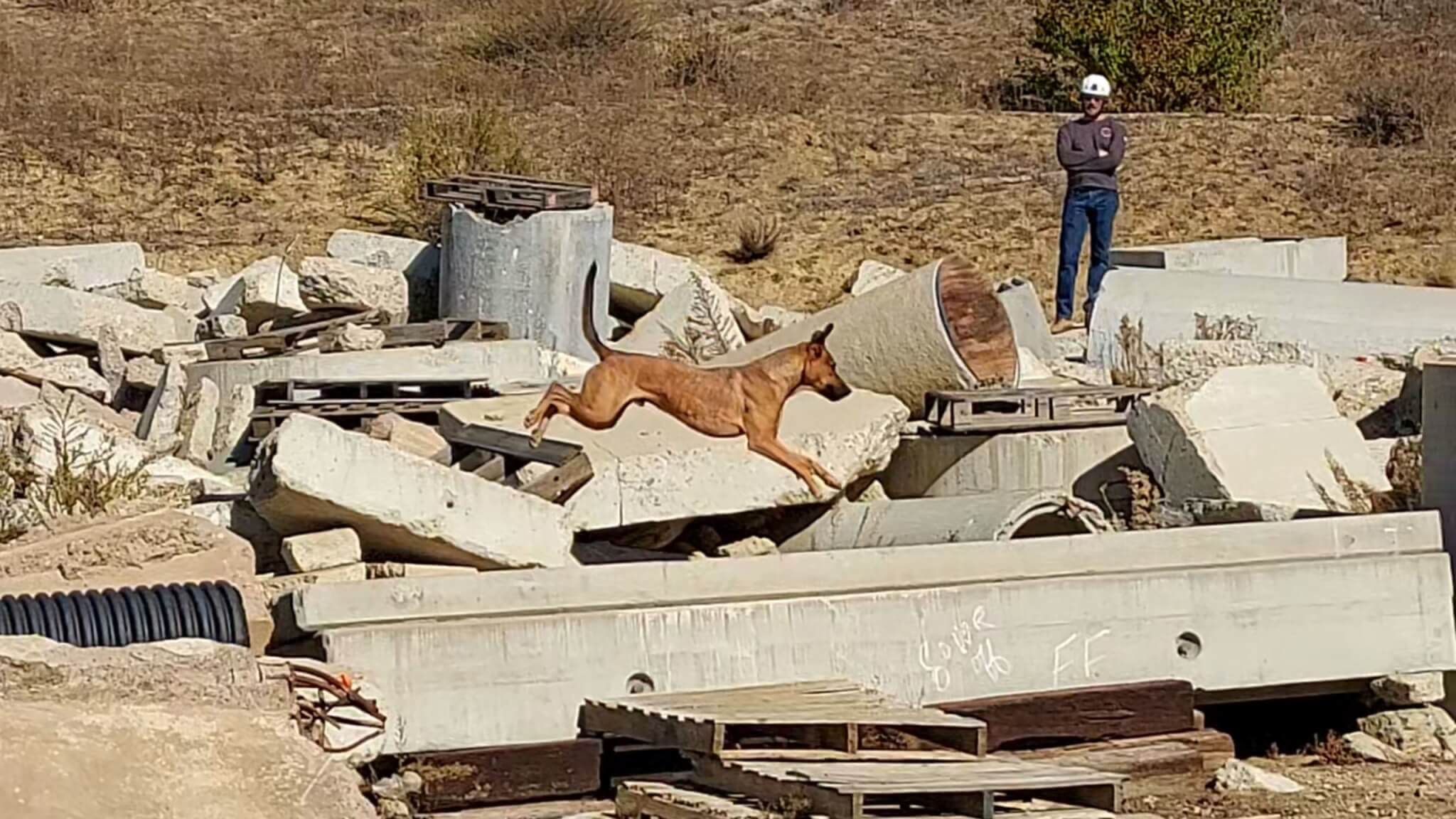 Home » Rescue Ranch Dog Steps Into A Promising Future After Search Team Pairing » SDF_Demo_Chirp in Rubble