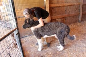fund helps dogs with special needs_Laura dn Aslan standing in enclosure July 17, 2024 by Natalie Golay
