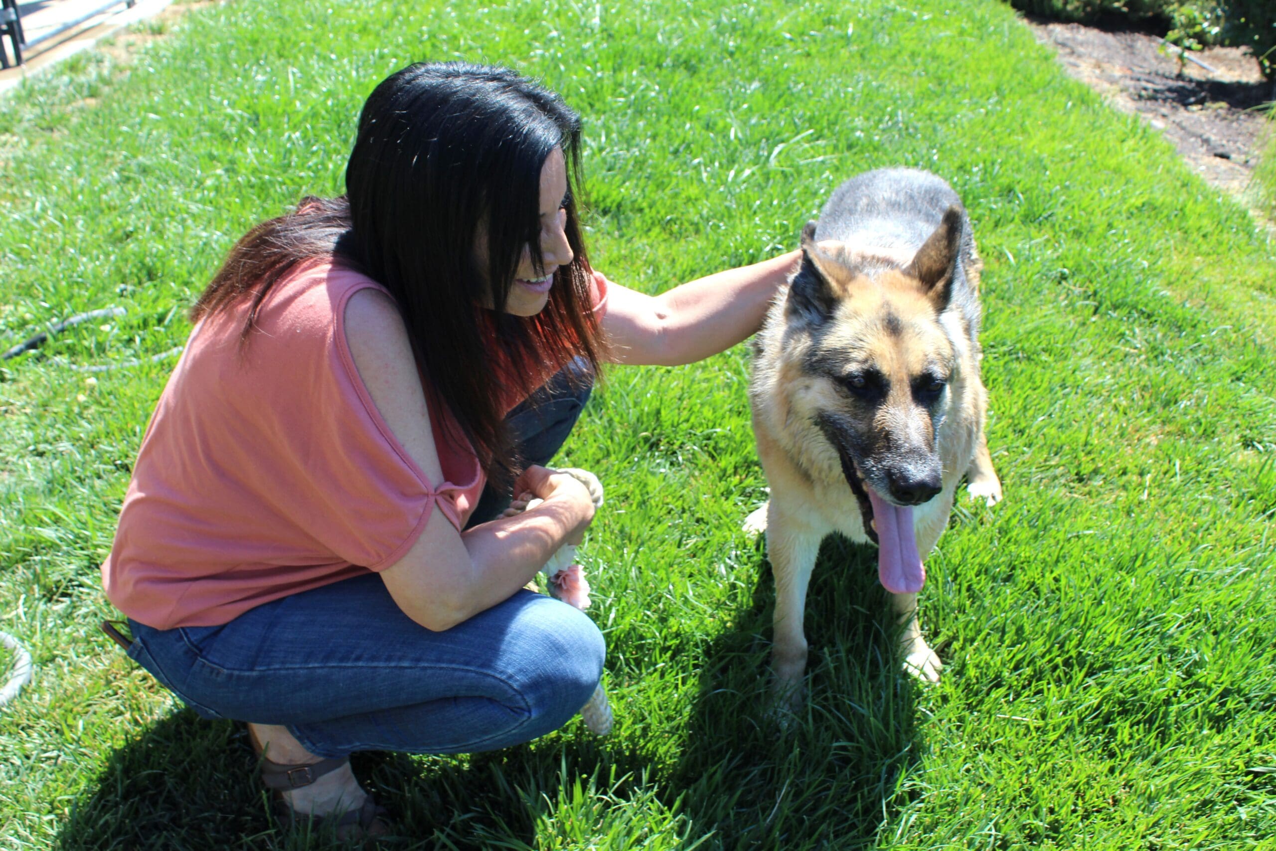 Fund helps special needs dogs_Cleo and Kristin in back yard 1