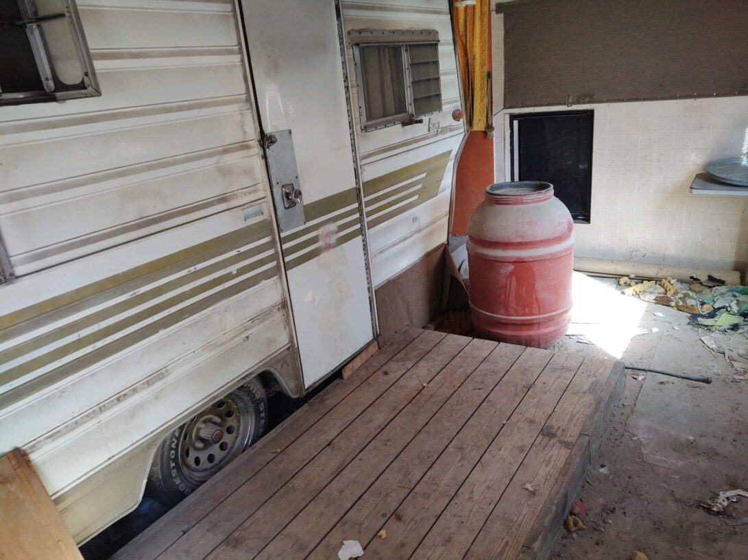 When John and the ACOs entered the dilapidated structure, they found an old camper trailer inside. The puppies were hiding underneath. Neglected and expecting, their moms had apparently chosen to whelp in this makeshift shelter. Now, they were nowhere in sight. Food was left out, just in case. Sure enough, the mothers reappeared on Friday. This was good news. The pups will do much better with their mothers to nurse and care for them. The adults will get the attention they need.