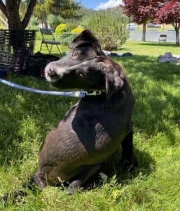 Home » Rescue Ranch Pups Cheer Hospital Staff At Mental Health Awareness Event » Alfonzo_looking_over_shoulder