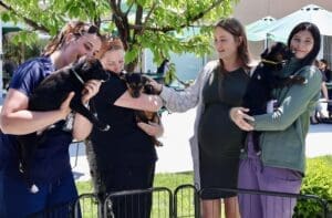 Home » Rescue Ranch Pups Cheer Hospital Staff At Mental Health Awareness Event » Fairchild_staff_holding_pups