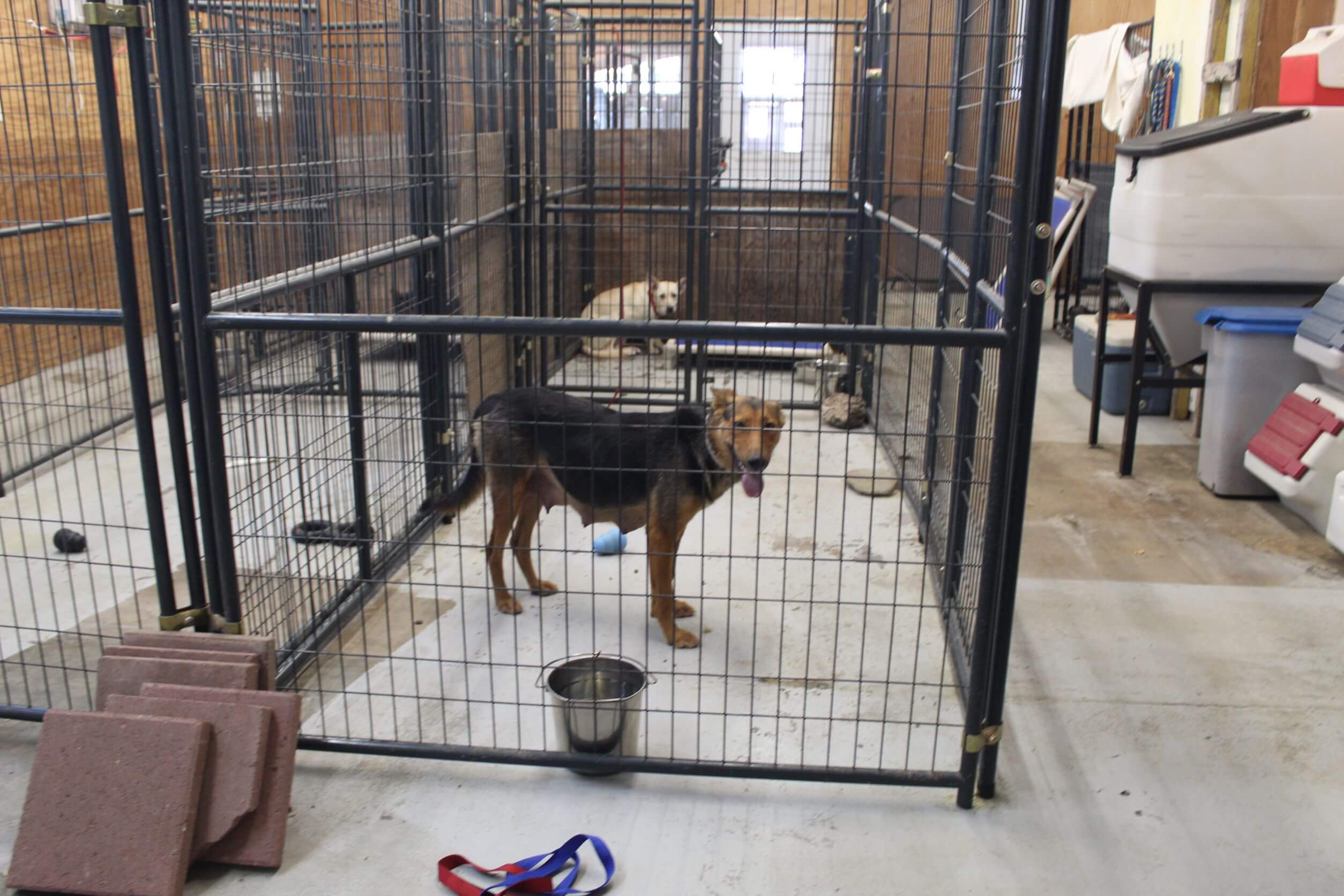 Rescue Ranch Sanctuary, momma dog kenneled in former medical building