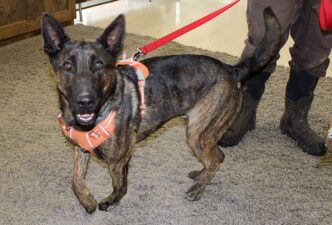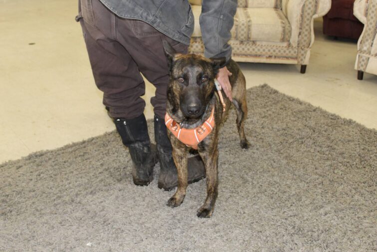 Rescue Ranch volunteers Bill and Diana Chesney came in with their adopted Rescue Ranch dog, Flores. Flores and his siblings were rescued as very young puppies during the Lava Fire in 2021. Thankfully, they were eventually reunited with their mother.