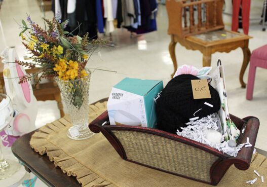 Patrons flowed in steadily, checking out the furniture and bargains throughout the store. They shopped, socialized with friends and enjoyed a slice of delicious cake. Some had even brought their dogs along. Hoping to win one of the prize drawings, buyers dropped sales receipts into a glass bowl held aloft by a colorful seasonal bunny.