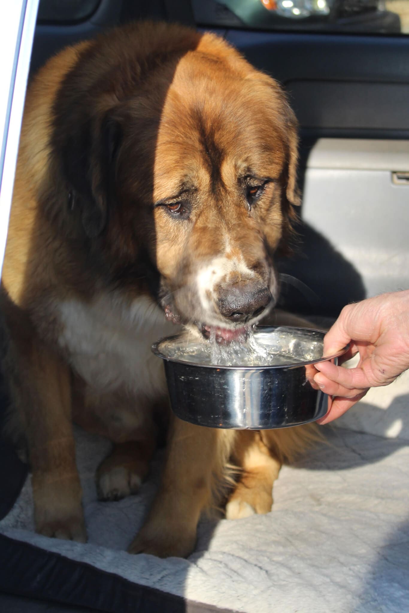 Home » Sad Rescue Ranch Saint Bernard Finds Love In Time For The Holidays » Saint Bernard_Thor_drinking water at 2nd rest stop_1