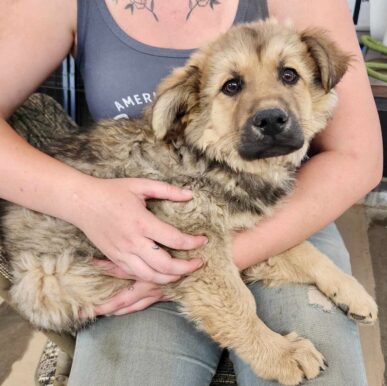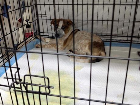 The story begins with puppies abandoned at a work site in Macdoel, CA. A good samaritan found two snuggled under some equipment. A third pup, deceased, was lying nearby. The finder brought the survivors to Rescue Ranch, where we named them Fiona and Fisher. We began treatment for severe dehydration but it was clear that Fisher was struggling. Then both pups broke with parvo.