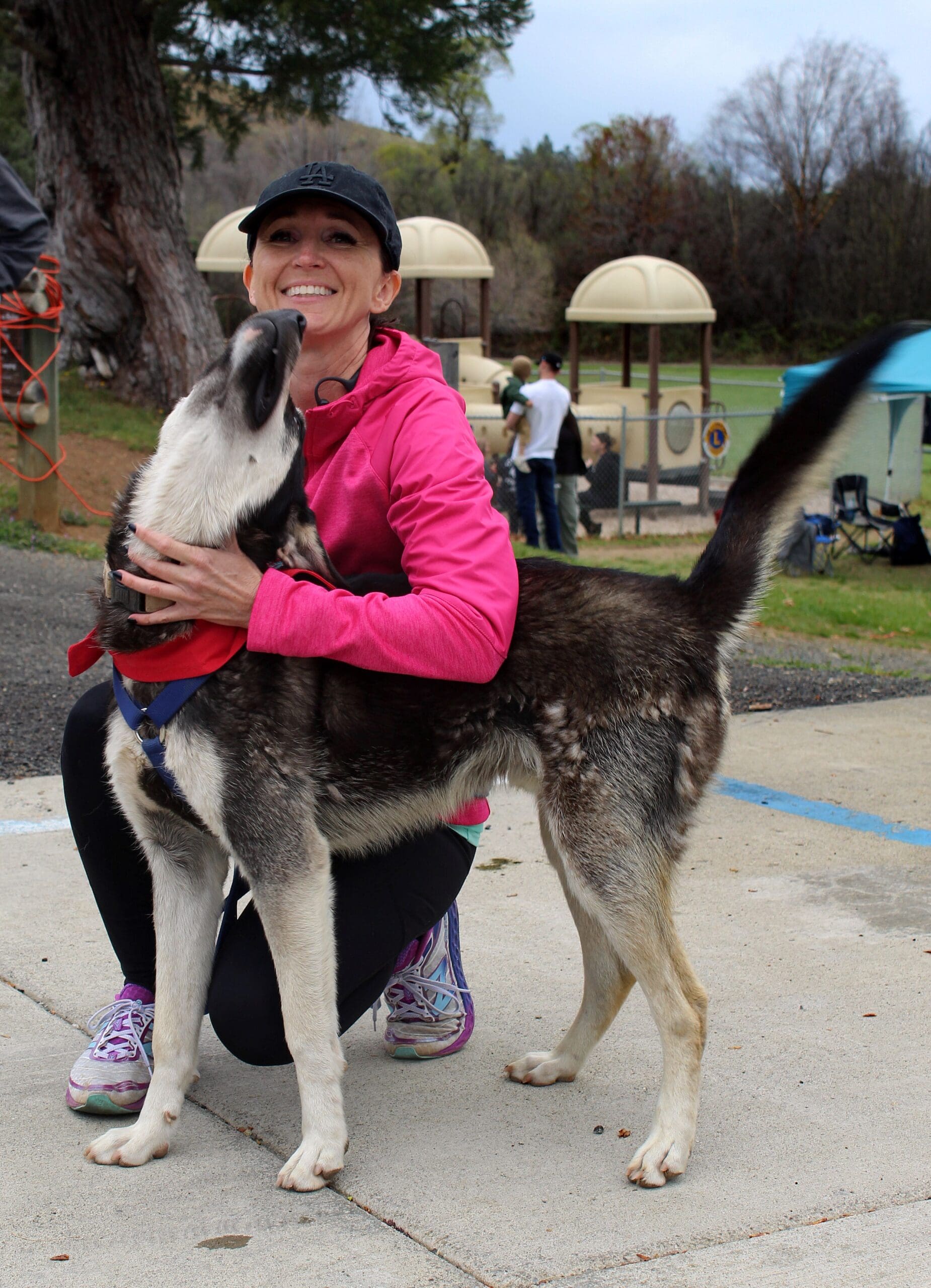 Home » Shelter Dogs Shine Bright At 5k Run Hosted By Karuk Youth Leadership » Shelter dogs_Daisy with 5K volunteer with rR husky mix