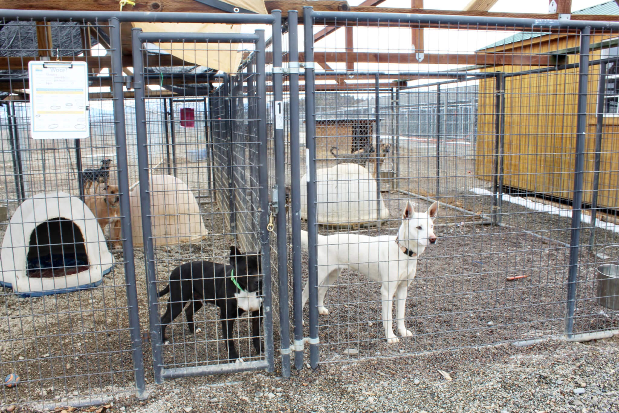 Benny doing fine in kennel with neighbors