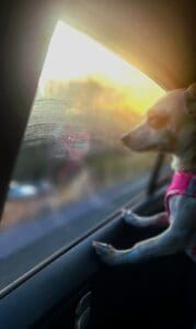 Unfortunately a few months later she had her 1 st grand-mal seizure. Terrified, we took her to ER, where she spent a night with IV’s, tests & given medicine. She underwent a battery of tests as her seizure activity became frequent and increased in intensity. During this time I became extremely close to her, as since her adoption, had been “Daddy’s girl”. Her veterinary team, gave us a treatment plan which was rigid yet doable. We became members of several “parental groups of seizure disorder canines” from options of holistic home care, and group discussions to homemade diet and exercise regiment. Her plan is successful at this time, and she is always on an adventure. She is affectionate and has enriched our lives in so many ways. Her nickname is the ‘Little Empress’ as she has a majestic stride and carries herself a such.
