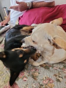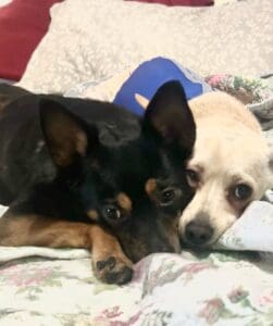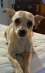 Tiki was adopted in February of 2024. She was the runt of a bundle of busy Cheweenie puppies. Fearless, intellegent, highly athletic, a tad mischievous and beautiful, she has become the ” heart center “of our home. Blissful days ensued and she quickly bonded with her new big brother becoming inseparable within a week! Potty trained in 2 days !!