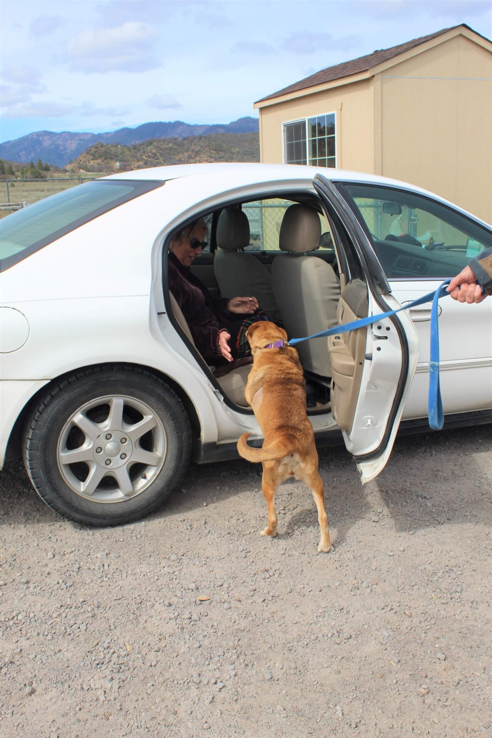 Home » Want To Volunteer? Spend Quality Time With A Rescue Ranch Dog! » Annie jumos into the car with Marni
