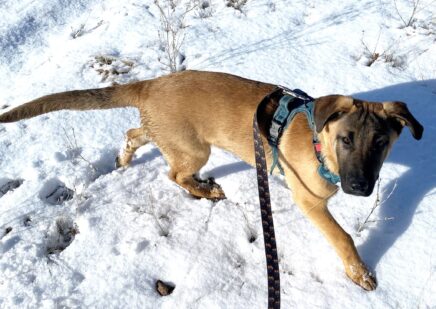 - Leash and halter training: teach young dogs to accept a leash and/or harness. Work on their leash skills while walking them on ranch grounds.