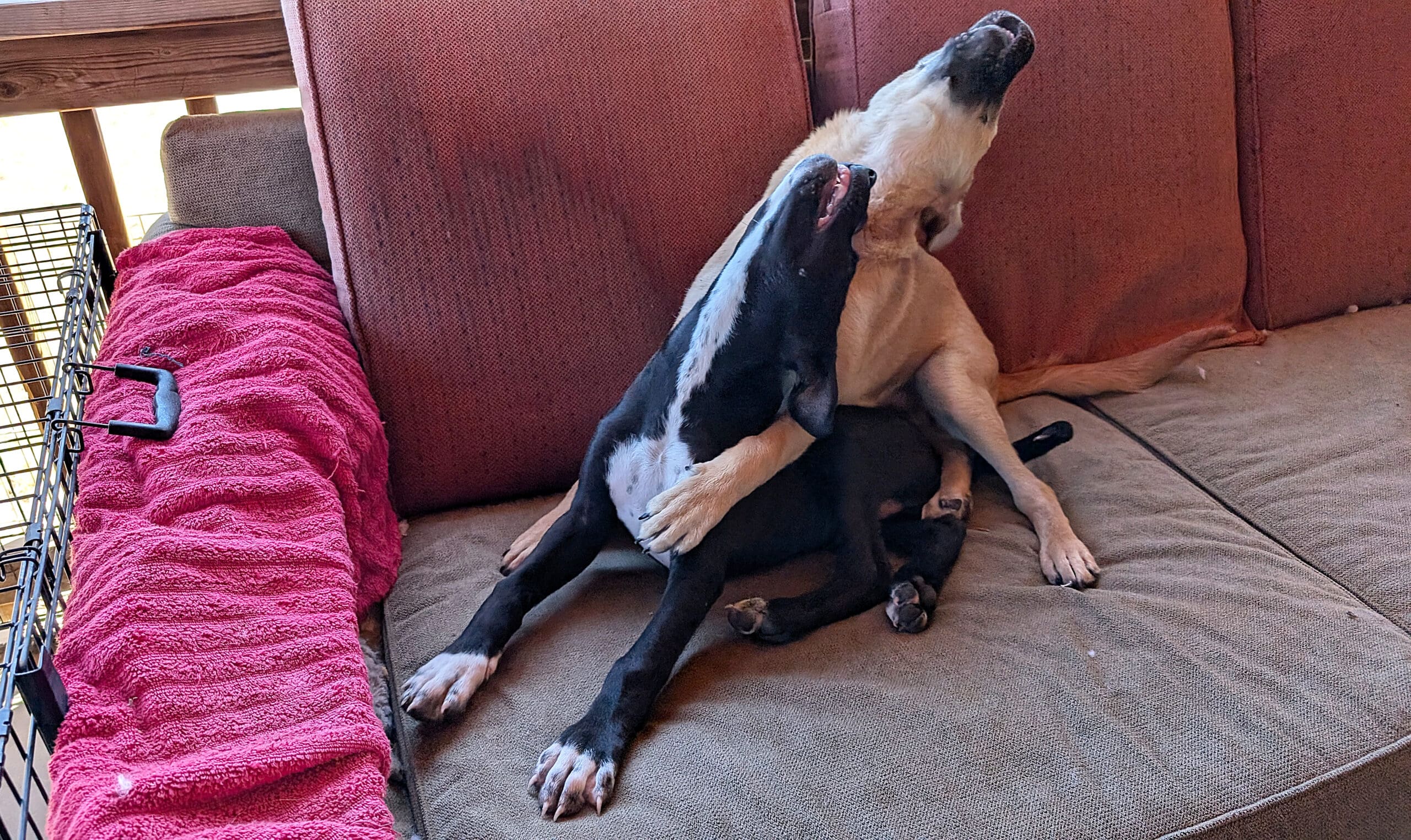 Home » Want To Help Sick And Injured Puppies? Please Give To Kitu’s Fund 2024 » Olivia and Patrick playing on the couch